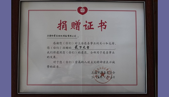 2014年,上海紅箭自動化設備有限公司為上海市慈善基金會捐款 2014